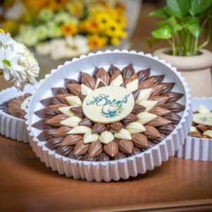 صحن فاخر من الشوكولاتة البلجيكية المميزة، مُعد بعناية ليضم تشكيلة متنوعة من القطع المحشوة بنكهات غنية تجمع بين الطعم الكلاسيكي
