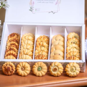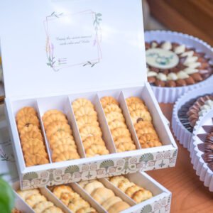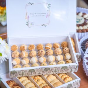 بوكس معمول التمر الفاخر يجمع تشكيلة متنوعة من النكهات التي تلبي جميع الأذواق. يبدأ بالمعمول الكلاسيكي بحشوة التمر الطرية، ويتألق