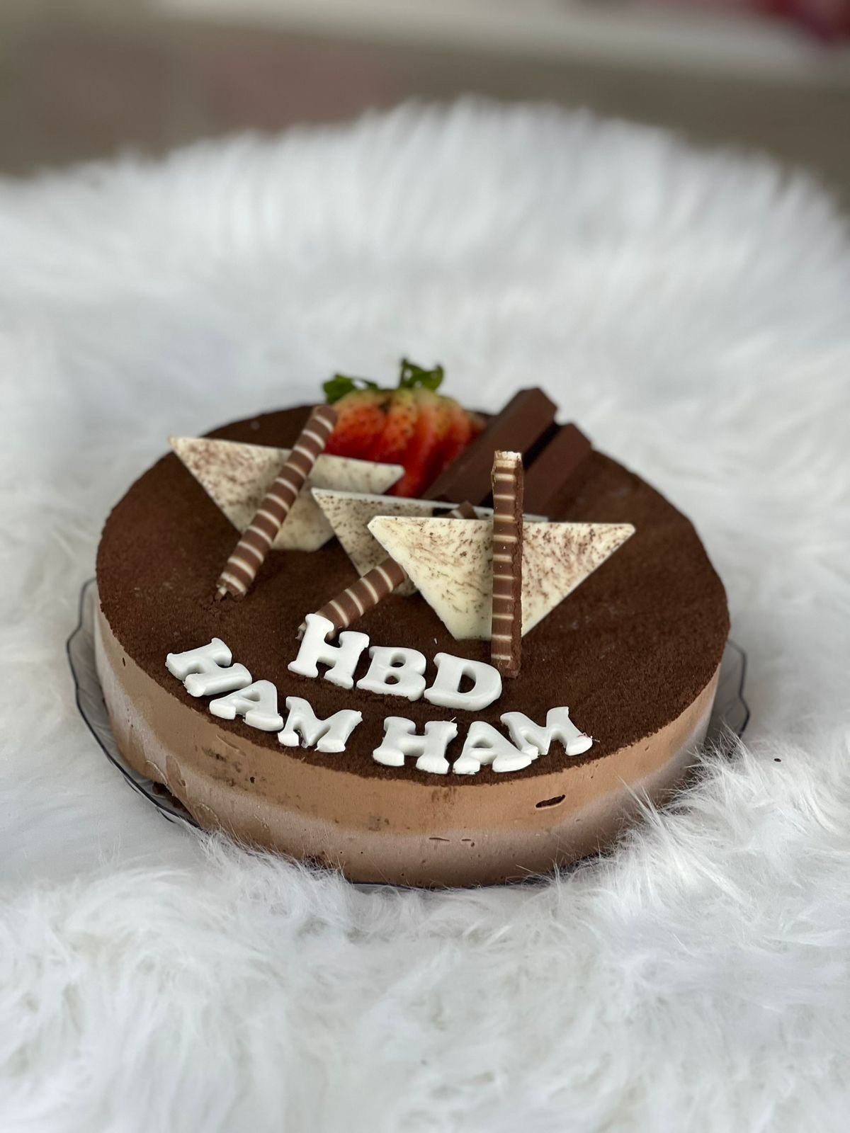 تشيز كيك شوكولاتة فاخرة بطبقات كريمية ناعمة ومذاق غني، مغطاة برشة كاكاو بودر لذيذ. مزينة بقطع شوكولاتة بيضاء وبنيّة فاخرة، أعواد مقرمشة، مع لمسة فواكة طازجة لإضافة توازن منعش. كعكة مثالية للاحتفالات والمناسبات الخاصة تضيف لمسة من الفخامة والحلاوة لكل لحظة