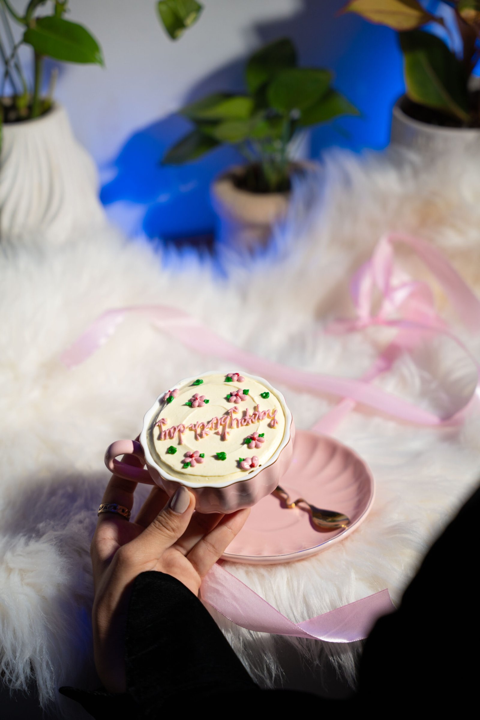 كوب سيراميك أنيق يقدم بطريقة مميزة مع الكيك الطازج داخل الكوب، ليمنح تجربة مختلفة تجمع بين المذاق اللذيذ والشكل الجذاب. يتم تزيينه باحترافية حسب المناسبة (أعياد ميلاد، تخرج، أو مناسبات خاصة) ليضفي لمسة شخصية وفريدة. يتوفر بألوان متعددة: الأحمر، الوردي، والأبيض، ونضع الكوب في بوكس شفاف وممكن ان نضيف عليه بالون هيليوم. مما يجعله هدية مثالية أو قطعة ضيافة أنيقة تليق بكل لحظة مميزة.