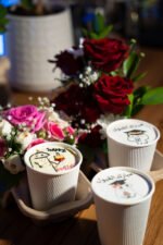 كوب سيراميك أنيق يقدم بطريقة مميزة مع الكيك الطازج داخل الكوب، ليمنح تجربة مختلفة تجمع بين المذاق اللذيذ والشكل الجذاب.